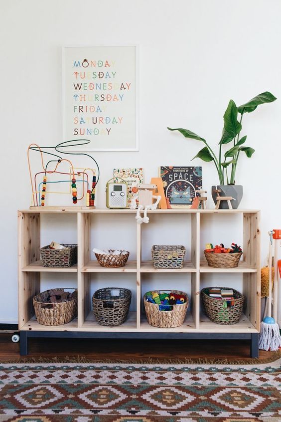 A polcokon a játékok levegősen helyezkedjenek el, a rendre és az egyszerűségre érdemes törekedni a kicsi születésétől kezdve. A bútorok színe legyen megnyugtató, kerüljük a harsány színeket.