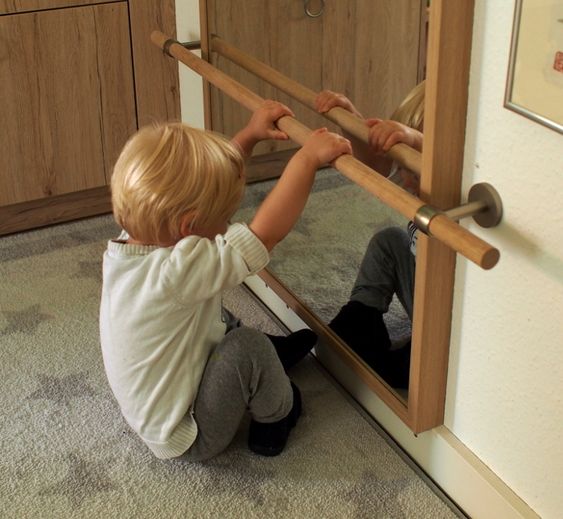 Maria szerint érdemes elhelyezni egy tükröt a kicsi szemmagasságában a falra, ezzel segítve önmaga megismerését, a szemmel követés illetve a testtudat fejlődését.